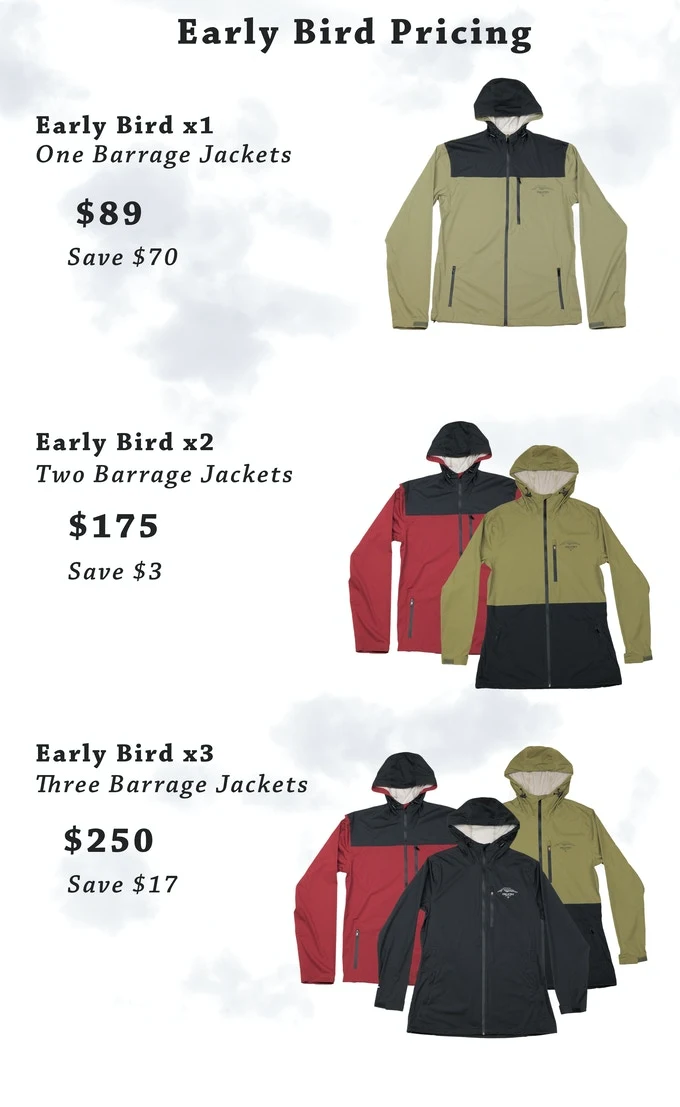 We're back with the latest and greatest; introducing the Barrage Technical Shell. Made from recycled coffee and plastic, waterless dye, and C0 DWR coating, this is our most sustainable piece yet.